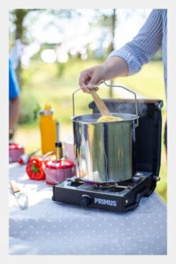The Moja Stove by Primus is perfect for when you grill food over an open fire and need an extra burner on the side. Or use as a compact kitchen solution for boats/motorhomes. In short, Moja can be used for many things – remove the lid for extra space and cook a large paella for the whole family or group of friends. The powerful 3,000 W burner enables precise regulation of the flame so that you can cook or fry at the appropriate temperature. The vessel support and drip tray are easily removed for cleaning. The wooden handle provides a comfortable grip and keeps the Moja locked when you want to move the kitchen.